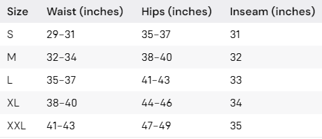 4. Inseam: Measure from the crotch to the bottom of your ankle.